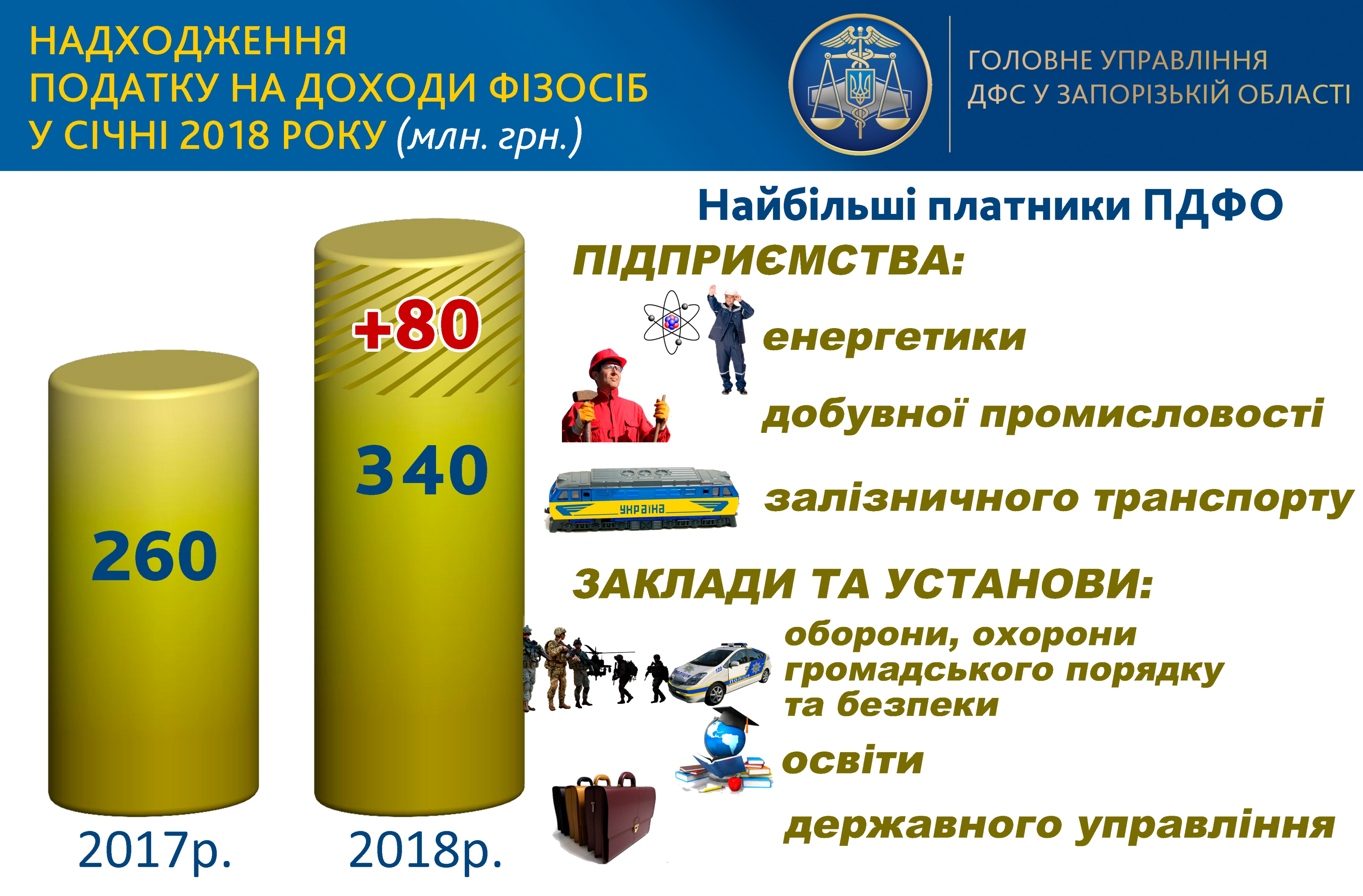 Местные бюджеты Запорожской области с начала года получили почти 340 миллионов гривен налога на доходы физических лиц (без показателей крупных налогоплательщиков, которые учитываются в Запорожском управлении Офиса КПН ГФС).