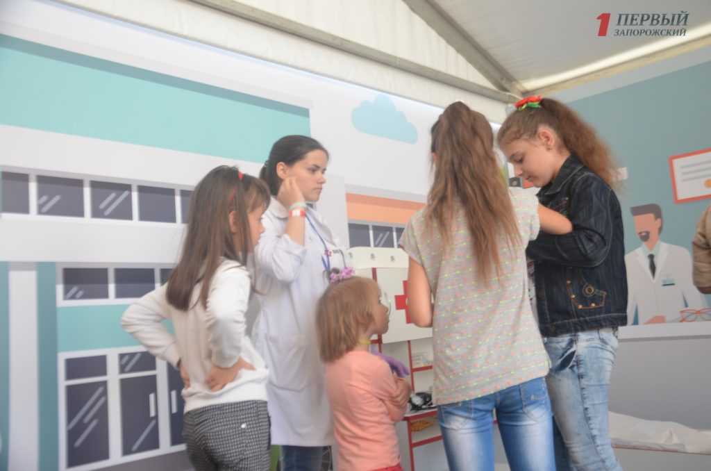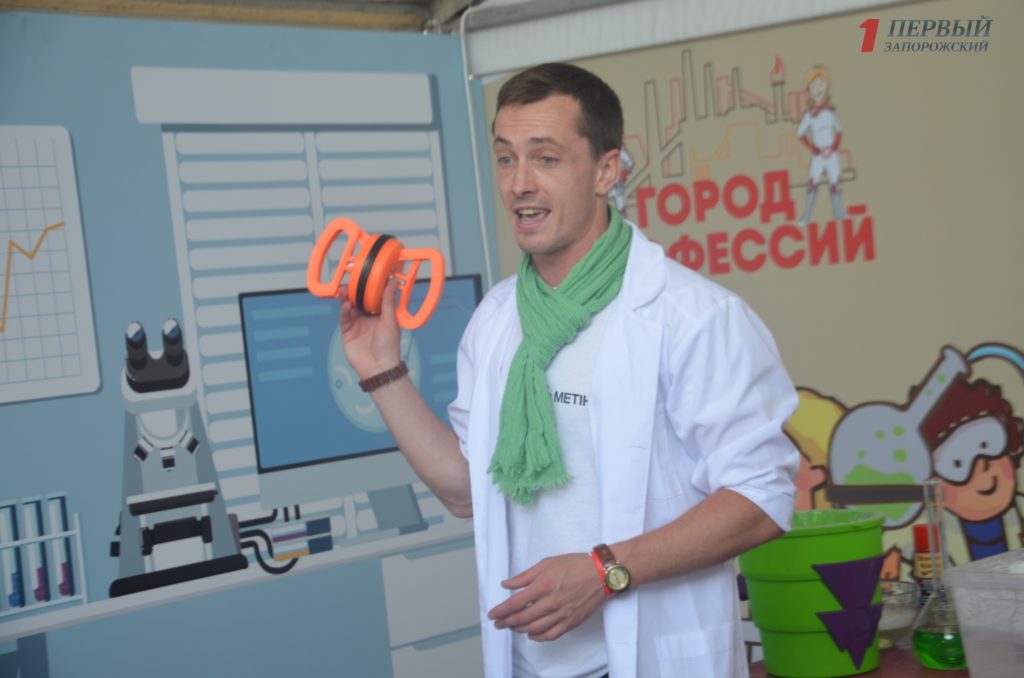 В ходе обзора маленькие запорожцы вместе с родителями послушали увлекательные лекции с видео-презентацией, посетили мастер-классы в каждой из локаций по специальностям с применением безопасных материалов. Так, в ходе презентации профессии химиков специальные аниматоры проводили различные увлекательные опыты, в «Эксперементариуме». Малыши в считанные минуты с помощью специальных реагенов меняли цыет жидкости, превращали воду в лед и многое другое.