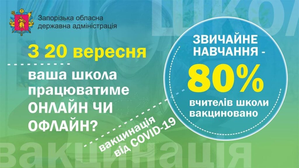 Согласно решению Правительства с 20 сентября те учебные заведения Запорожья, где вакцинацию прошли менее 80% работников, должны перейти в онлайн-формат работы в случае усиления карантина. Узнать, как будет проходить обучение в вашей школе или садике достаточно просто — нужно перейти по ссылкам в новости.