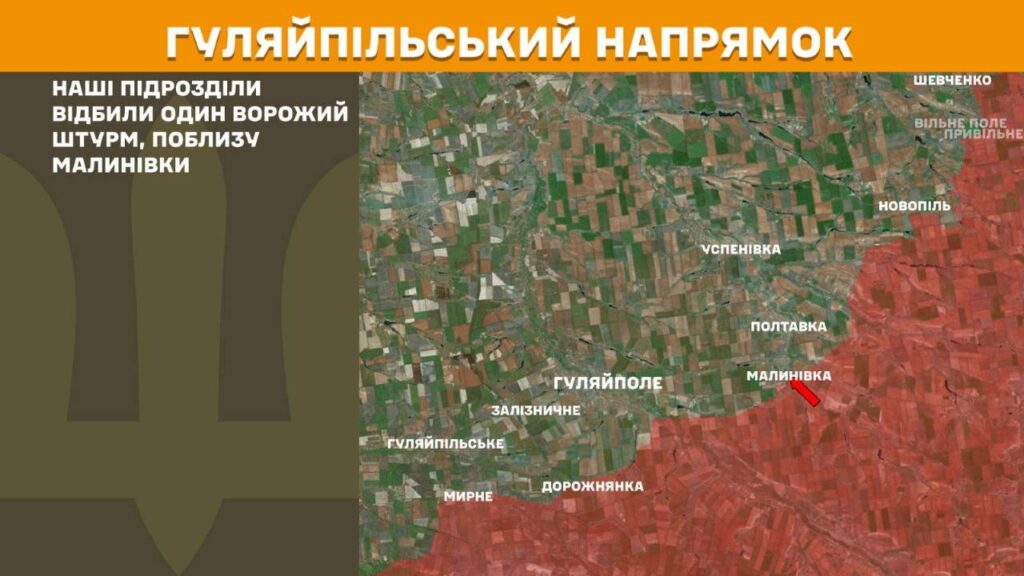 На Гуляйпольском направлении украинские подразделения отразили один вражеский штурм вблизи Малиновки Запорожской области.