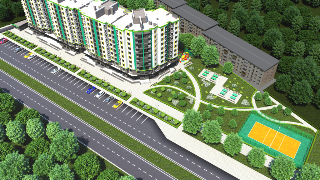 Предполагается, что первый и цокольный этажи будут отведены под коммерческую застройку – обустройство офисов, услуг торговли, отдыха и оздоровления. Также у запорожцев есть возможность заказать собственный гараж на охраняемой территории. Для детей предусмотрена безопасная современная площадка с мягким резиновым покрытием. Рядом с домом будет реконструировано футбольное поле, обустроены теннисные столы, создана зеленая зона с удобными лавочками для всех жителей города.