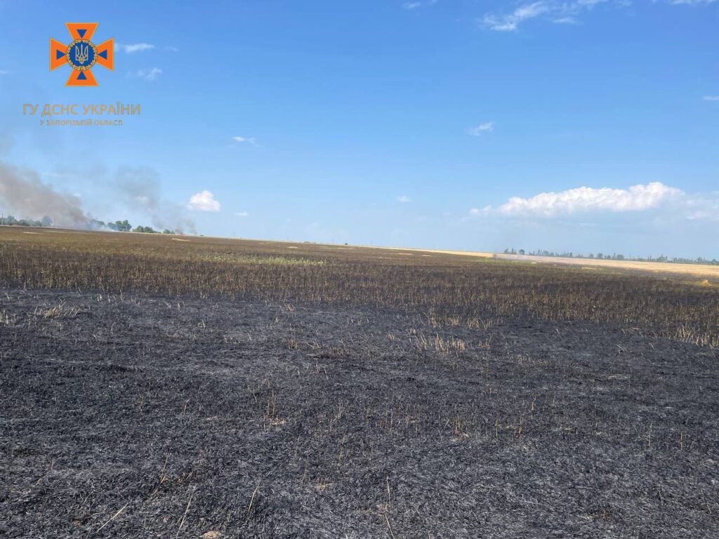 В результате вражеских попаданий на территории Пологовского района произошло возгорание полей. В общей сложности сгорело около 45 гектаров пшеницы.