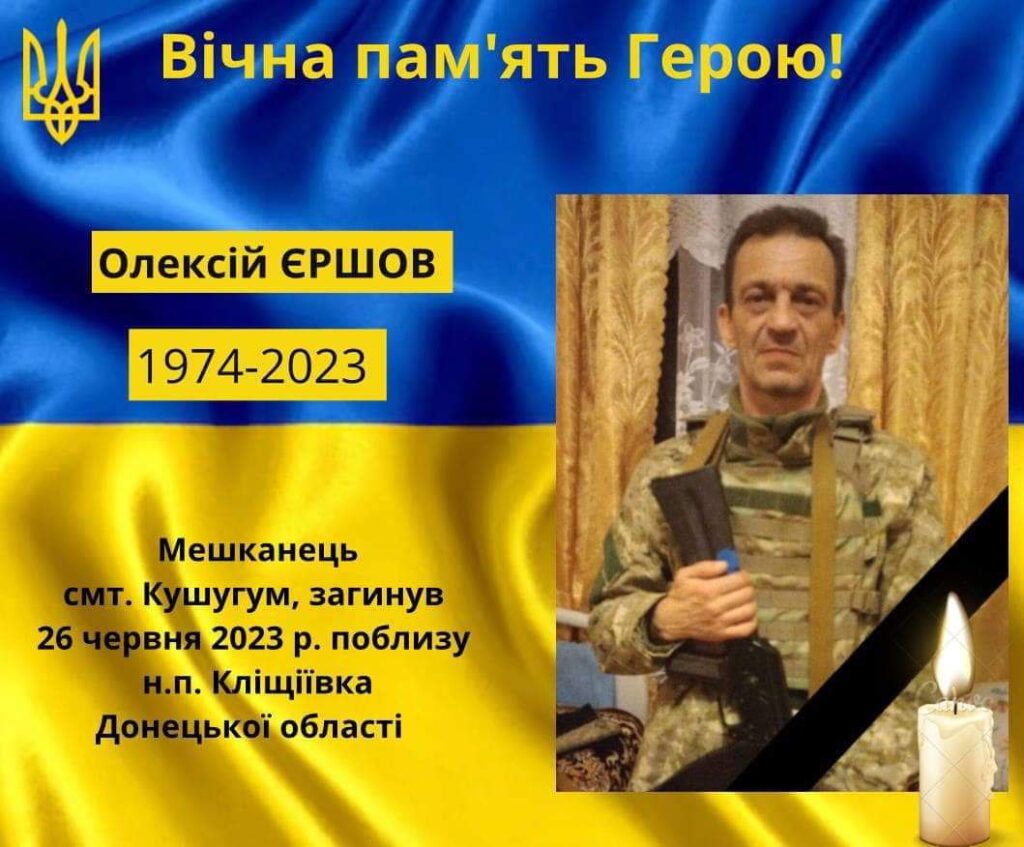 Житель Кушугумской громады Запорожского района Алексей Ершов 26 июня героически погиб в бою за Украину возле населенного пункта Клещиевка Бахмутского района Донецкой области.