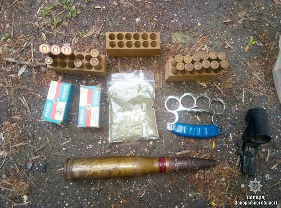 Вчера вечером, 16 мая, работники превенции Бердянского отдела полиции неподалеку одной из школ заметили подозрительного гражданина. Во время поверхностного осмотра у последнего, который оказался безработным ранее судимым 32-летним местным жителем, правоохранители обнаружили и изъяли более сотни патронов калибров 5,6мм, 5,45мм и 7,62мм, малокалиберный снаряд к автоматической пушке, кастет, а также сверток с веществом зеленого цвета и характерным запахом марихуаны.
