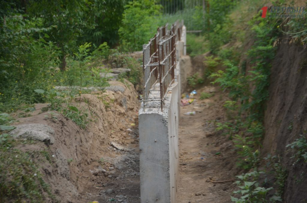 В настоящий момент на объекте отсутствуют строители и техника. Около входа на пляж посетителей радужно встречают поросшие травой перерытые котлованы, площадка с забетонированным фундаментом и металлические конструкции незавершенной подпорной стены.