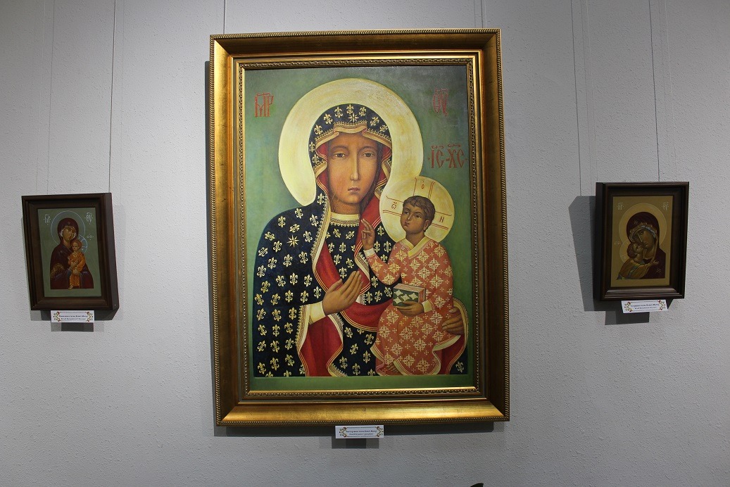 Особенность этой выставки — в значительном количестве Богородичных образов: келейных, аналойных, иконостасных. Среди них есть списки с византийских, древнерусских икон: «Владимирская», «Одигитрия». «Казанская», «Споручница грешных», «Киккский», «Касперивскяа», «Утоли моя печали» и другие. В экспозиции представлены первородные нерукотворные иконы в двух вариантах- «Спас на убрусами» и «Спас на Черепию».