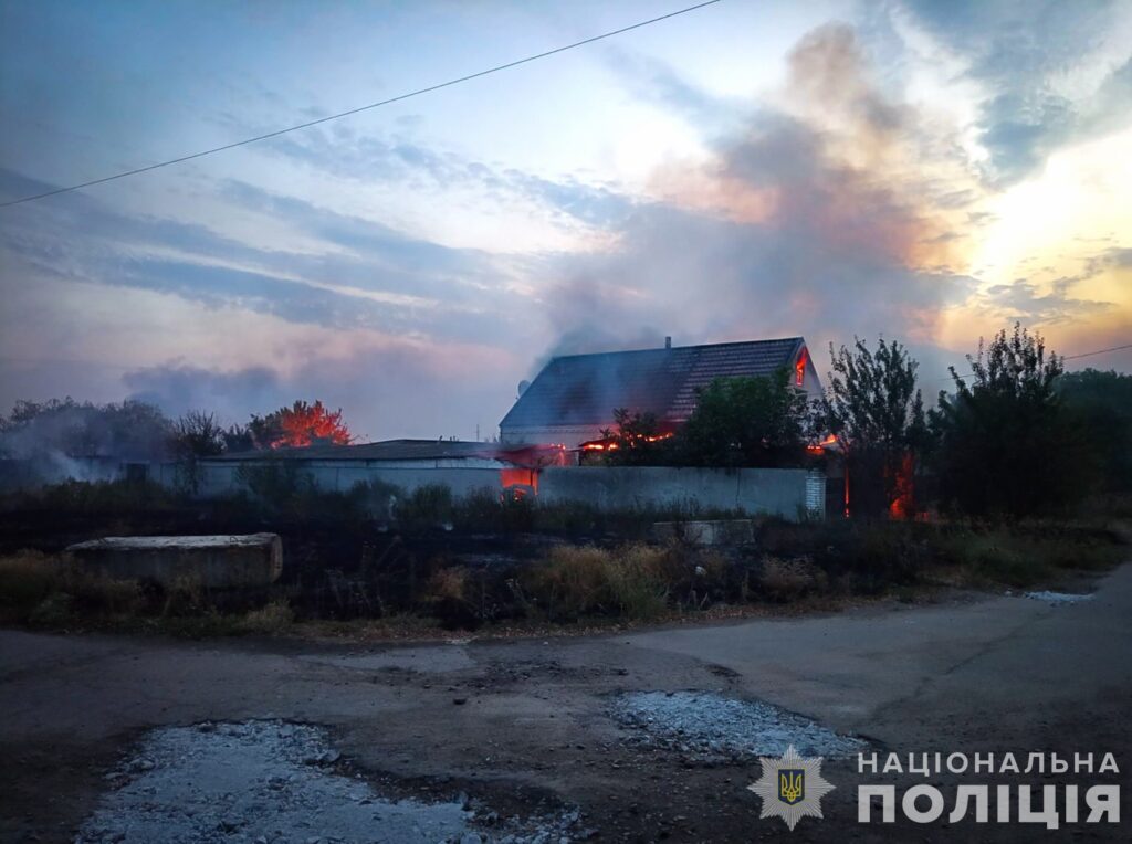 Такой обстрел по частному сектору произошел на этой неделе. Возле жилых домов загорелись трава и сухостой. Полицейские несколько часов тушили пожар.