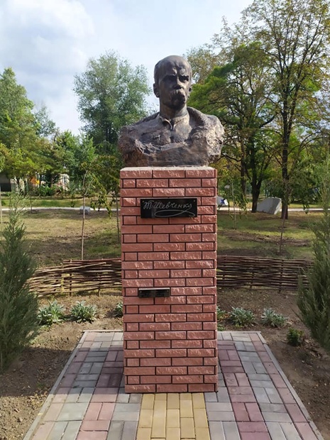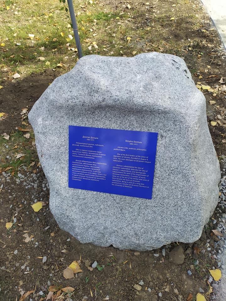 Памятник установлен выдающемуся украинскому поэту Тарасу Шевченко, а одна из глыб посвящена анархисту Нестору Махно и националисту Дмитрию Донцову.