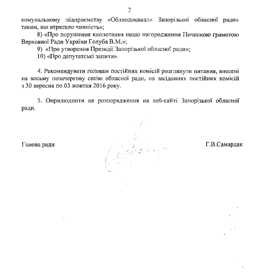 В среду, 5 октября, состоится восьмая внеочередная сессия Запорожского областного совета. Если же на этот раз будет кворум, то депутаты должны будут рассмотреть десять вопросов с повестки дня.