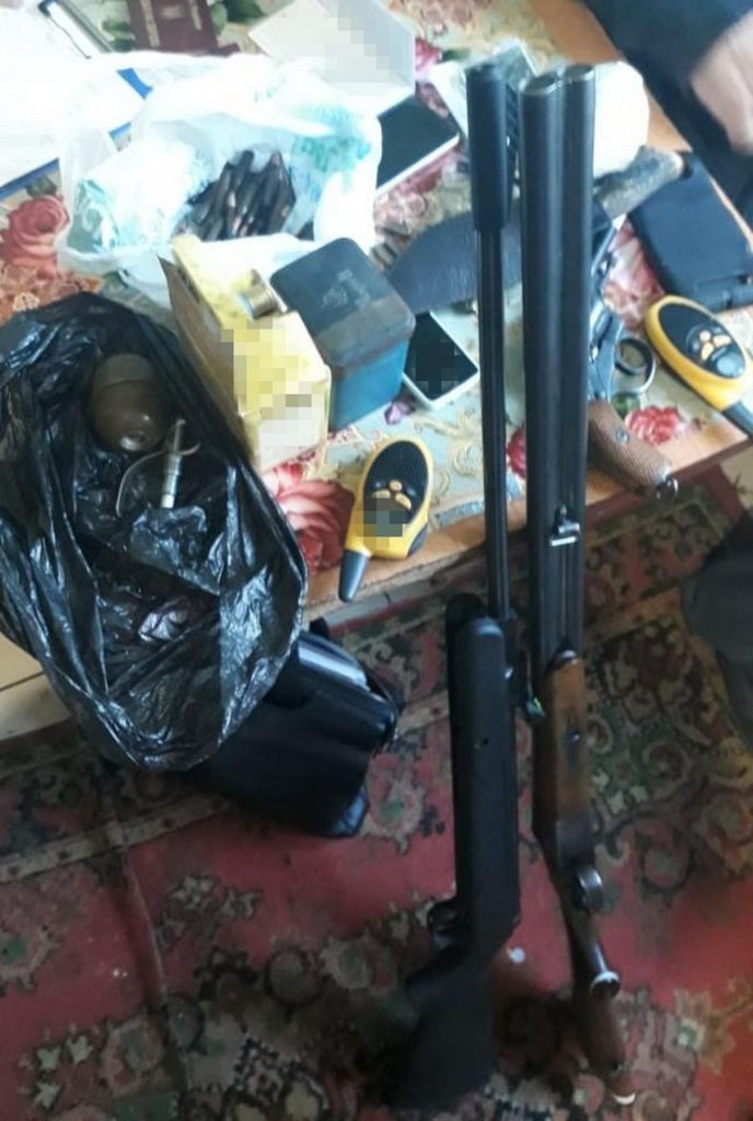 Во время проведения обысков правоохранители обнаружили в помещениях фигурантов дела реактивную противотанковую гранату РПГ-22, два автомата Калашникова, три гранаты Ф-1, три револьвера, пистолет Макарова, семь бронежилетов, большое количество патронов различного калибра и незарегистрированное автоматическое и охотничье оружие неустановленного образца. Также обнаружены телефоны, компьютерная техника с материалами, которые подтверждают связь злоумышленников с представителями РФ, документы террористической организации «ДНР».