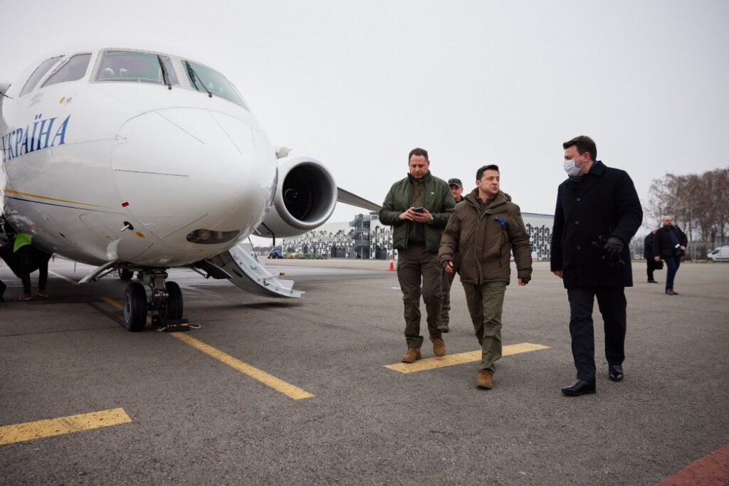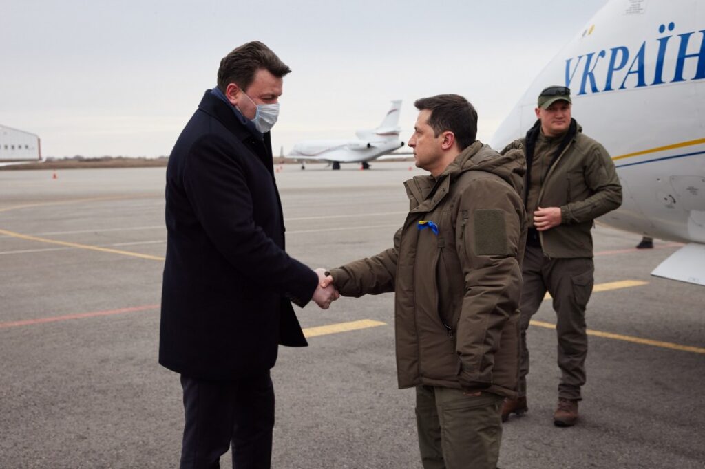 Президент країни прилетів до аеропорту Запоріжжя, де його зустрів керівник обласної державної адміністрації Олександр Старух.