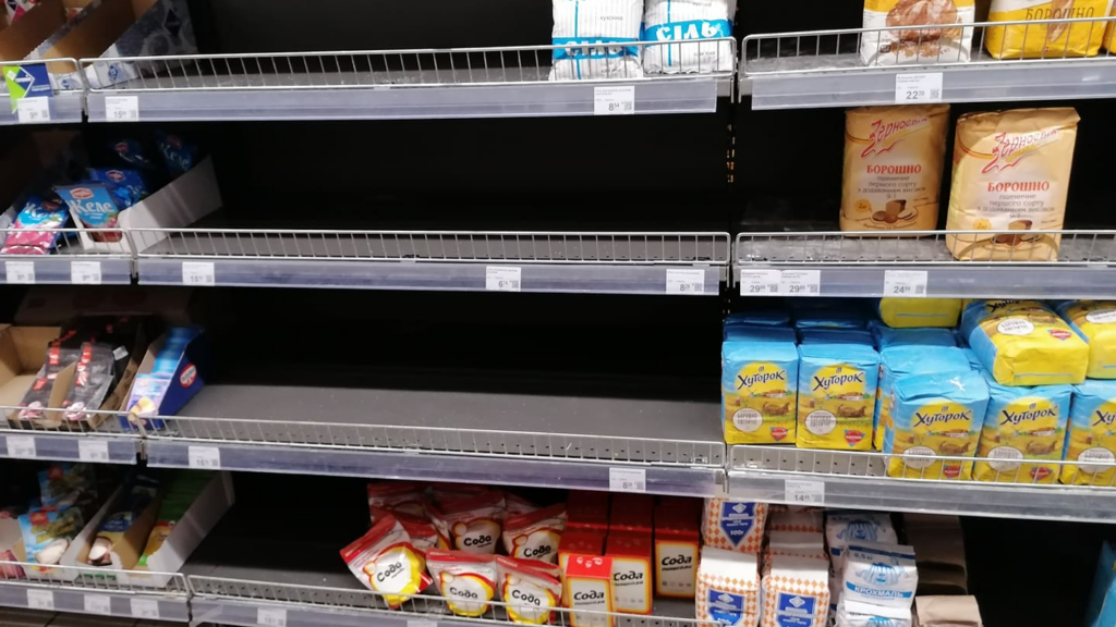 Попри усе це, мережеві магазини продовжують працювати. Поставки продуктів здійснюються, хоч і з затримками. На полицях є соціально важливі продукти. На складах – запаси на кілька днів.