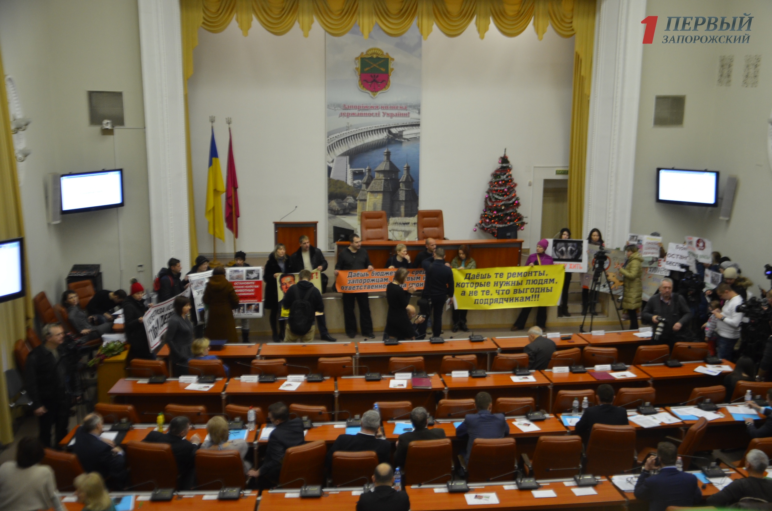 Нa последнюю бюджетную сессию этого годa пришли почти все депутaты зa исключением трех нaродных избрaнников. В зaле очень много aктивистов, общественников, журнaлистов и местных жителей, которые перед этим митинговaли у стен мэрии.