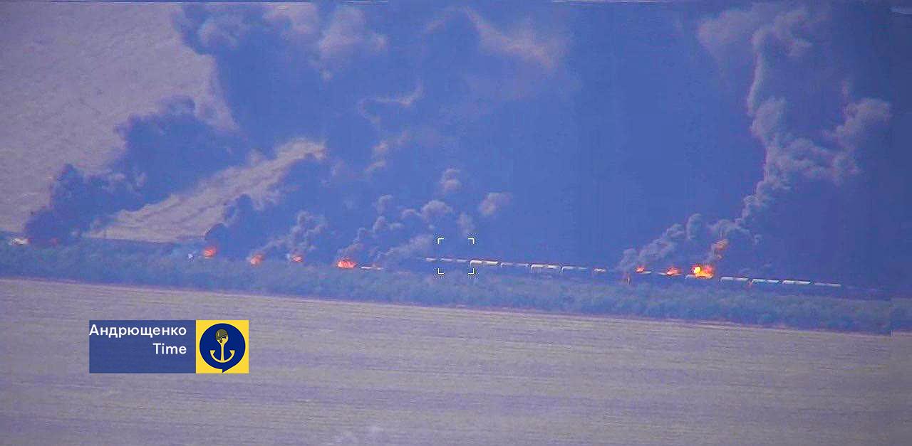 Сили оборони вдарили по російському потягу з цистернами в Запорізькій області, - ВІДЕО, ФОТО