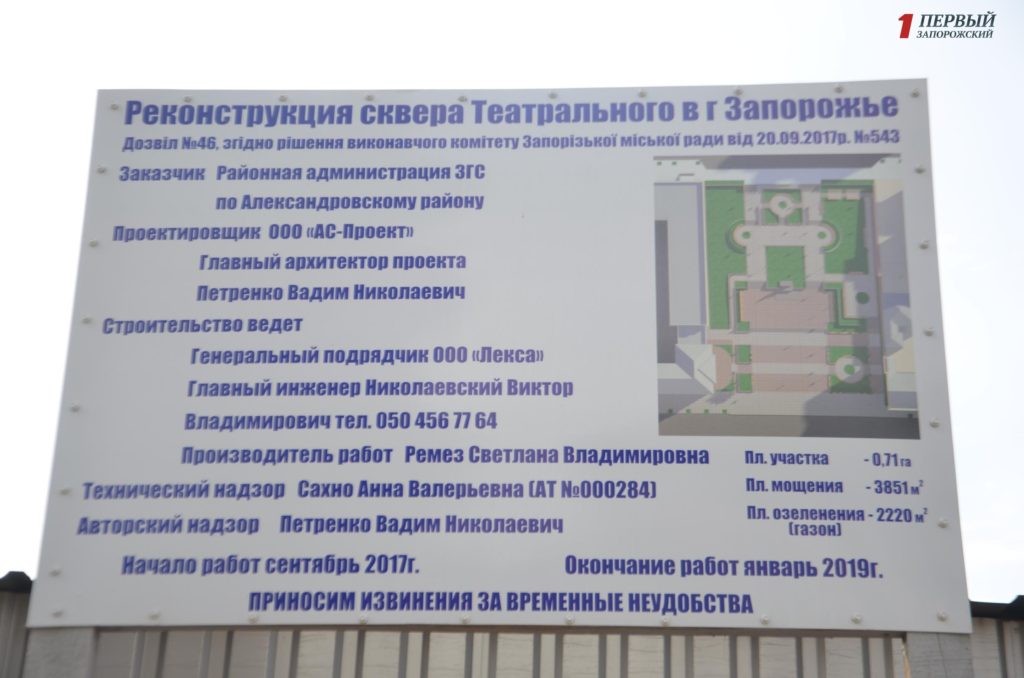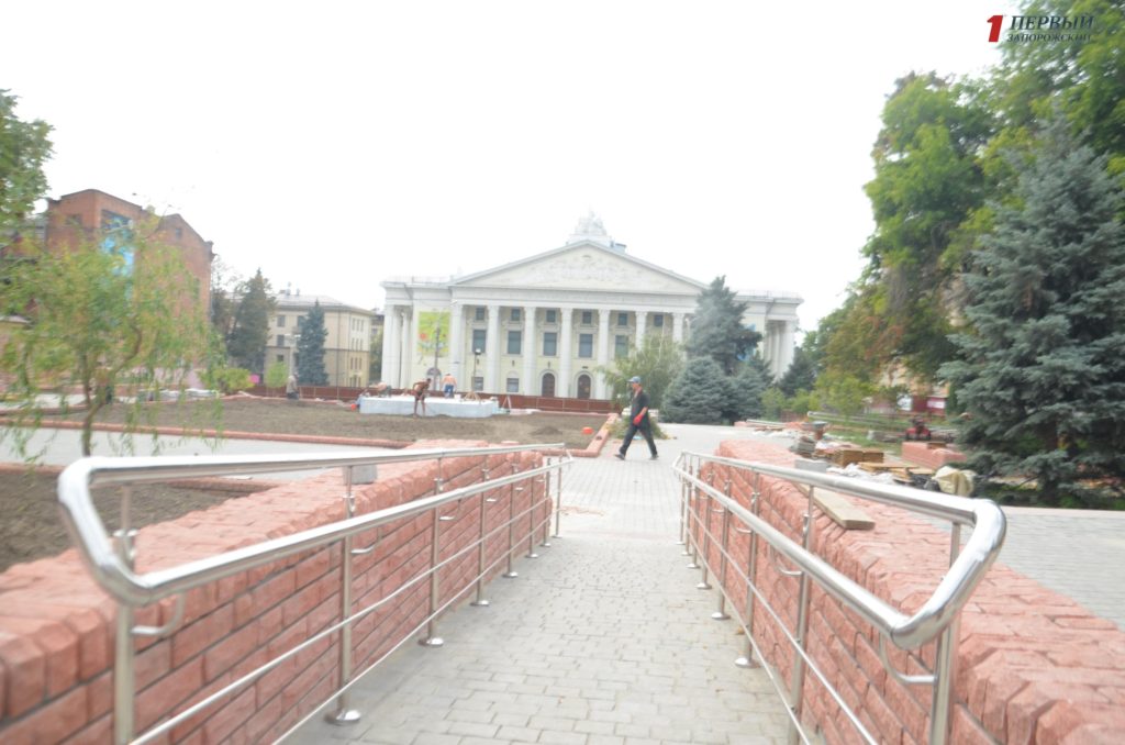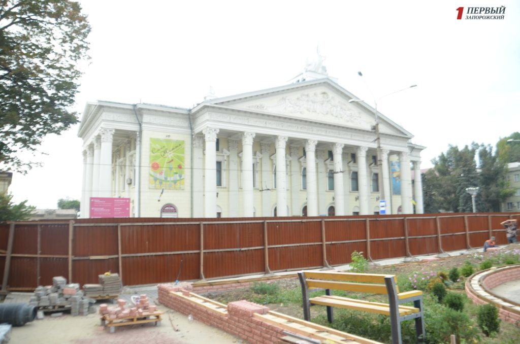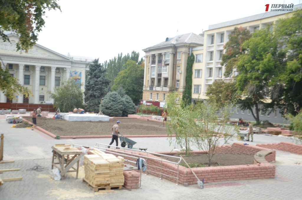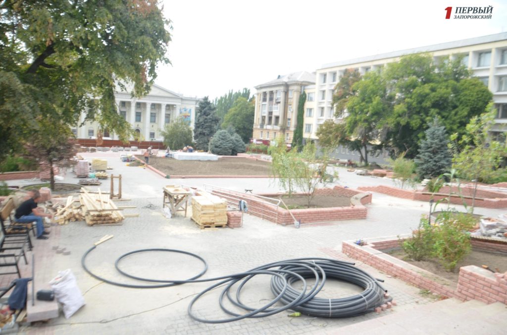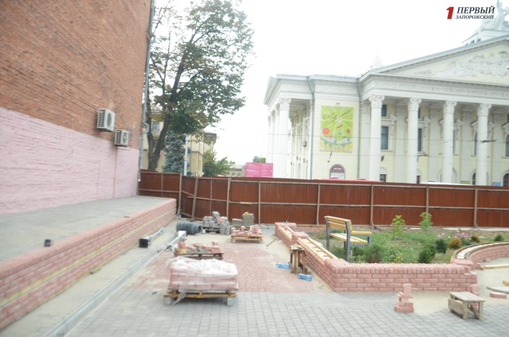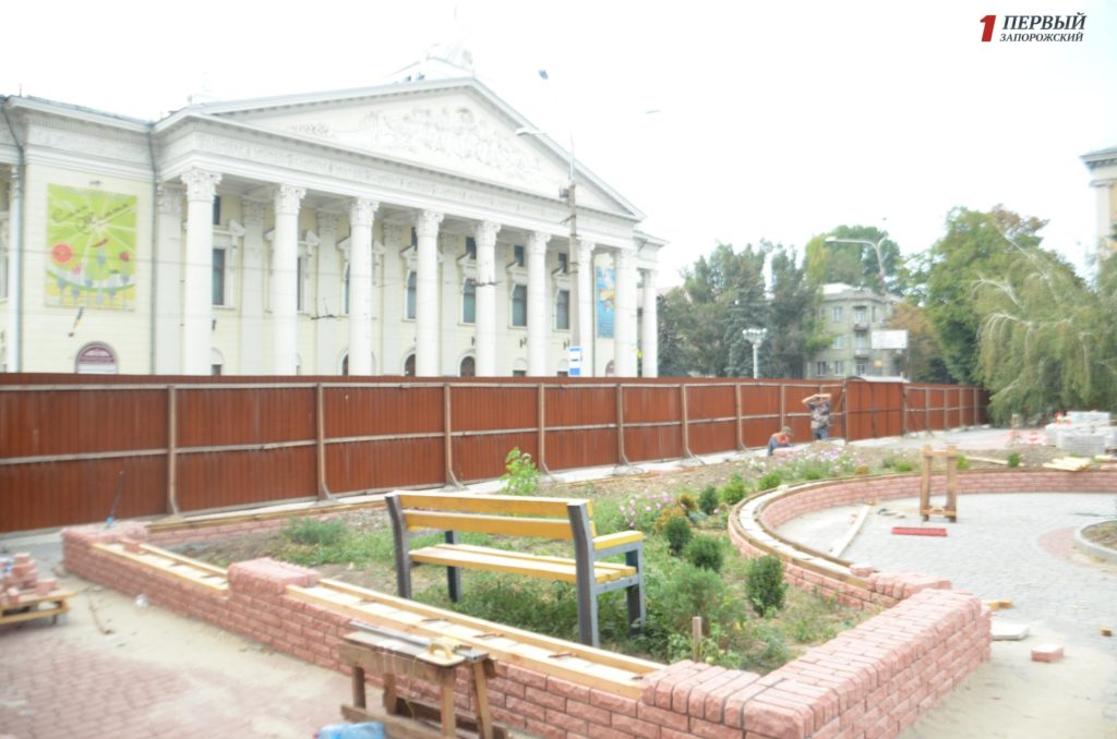 В центре города, возле театра Магара, строители заканчивают реконструкцию сквера Театрального. Сегодня, 3 сентября, «Первый Запорожский» отправился на объект посмотреть, как проходит финальный этап строительства.