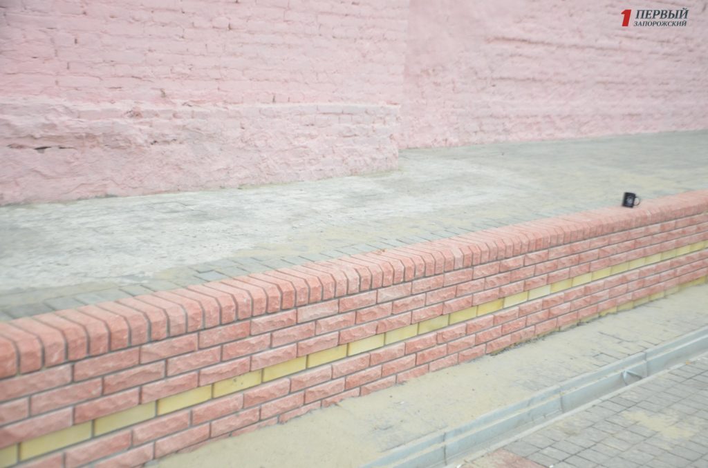 В настоящий момент рабочие уже полностью завершили возведение подпорной стены, выполненной в бежево-розовых тонах. Она укрепит фундамент исторического дома Лещинского, который расположен по соседству со сквером.