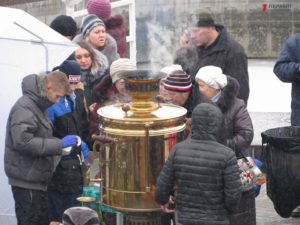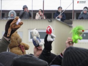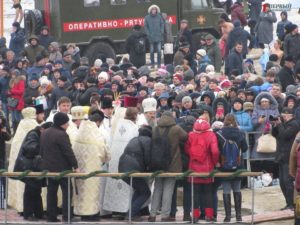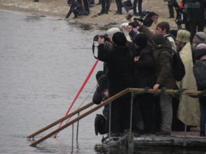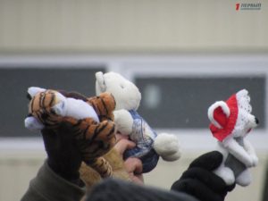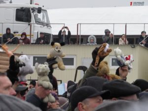 Все это время сотни горожан приходили с банками, бутылками, ведрами, канистрами, бидонами, чтобы унести домой освященную воду. Запорожские активисты пришли на пляж с мягкими игрушками и куклами, чтобы в очередной раз напомнить священнослужителям Московского патриархата о том, что служитель их церкви отказался отпевать безневинного малыша, который погиб от рук самоубийцы.