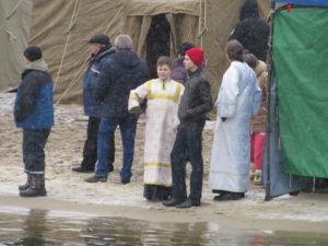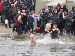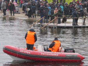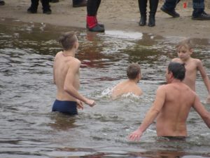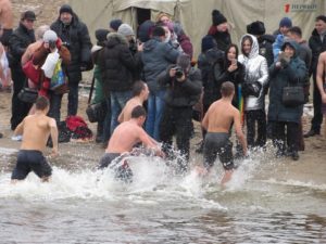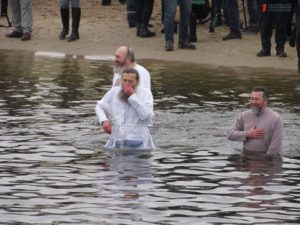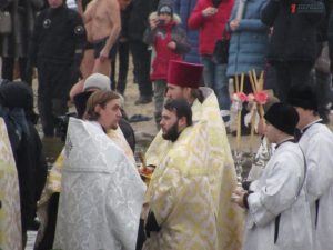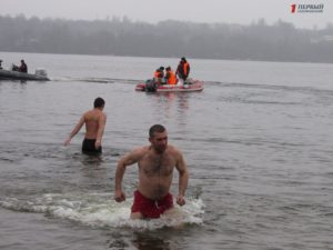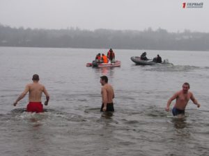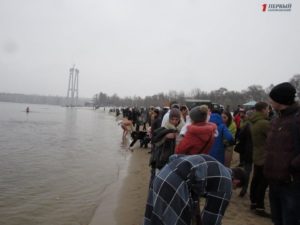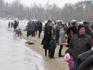Митрополит Запорожский и Мелитопольский Лука совершил Чин освящения вод Днепра. После этого запорожцы стали массово окунаться в ледяную воду. Среди смельчаков были не только взрослые люди, но и даже дети.