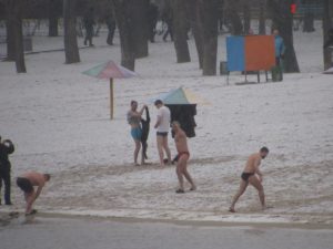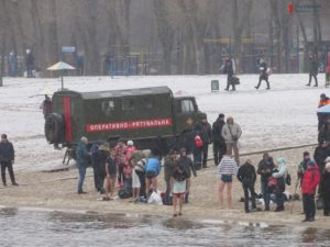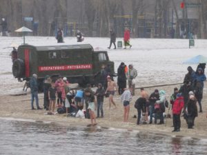 Сотни запорожцев пришли на Центральный пляж города, чтобы освятить тело и воду. На берегу дежурили водолазы и спасатели, а по периметру пляжа выстроились полицейские, чтобы охранять порядок. По бокам у каждого входа стояли машины «скорой». На правобережной части пляжа расположились палатки для переодевания, но это не помешало некоторым запорожцам раздеваться донага у всех на глазах.