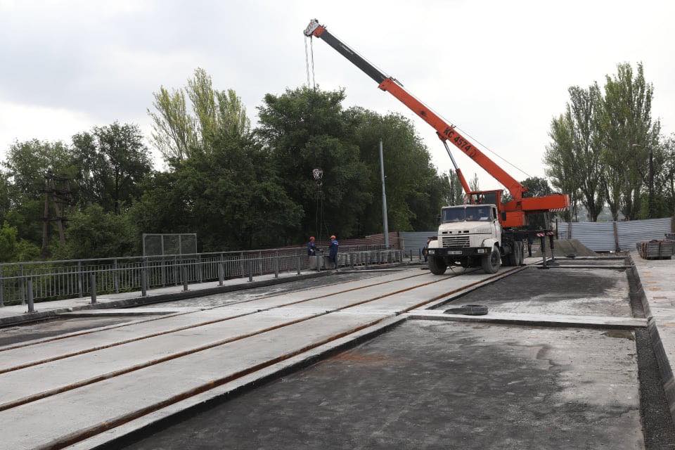 На сьогодні підрядна організація вже зробила відновлення опор конструкції і перекриття, відновила залізобетонні конструкції, облаштувала плити мости і тротуарів, зробила основу під укладку трамвайних рейок.