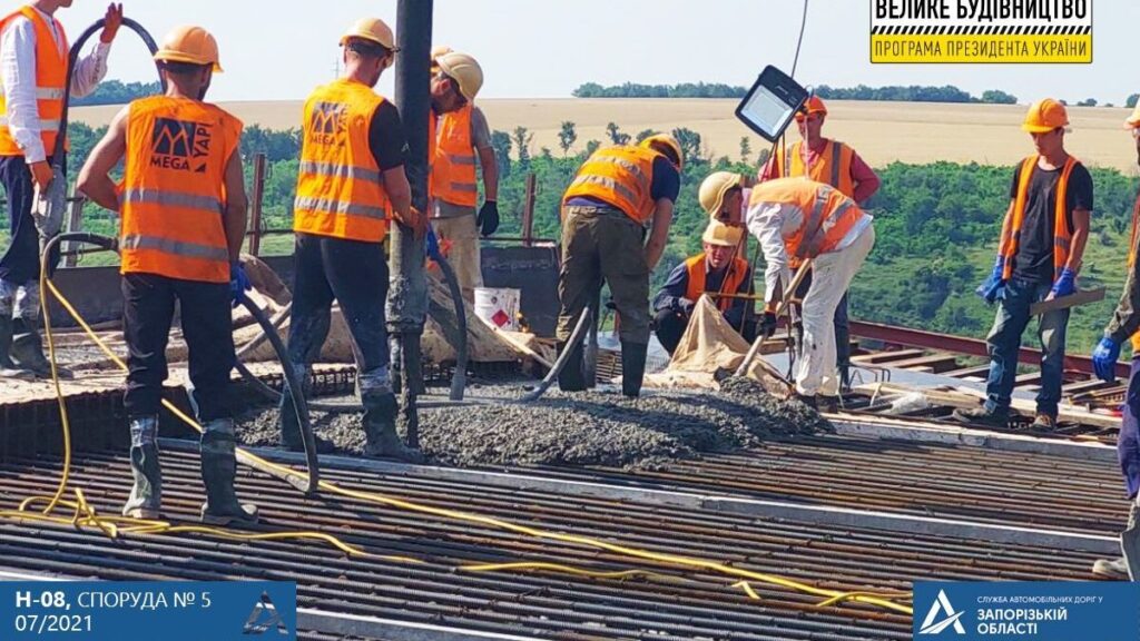 Мостобудівники завершили бетонування підходу з боку о. Хортиця в низовий частини балочного мосту, який будують за програмою Президента України «Велике будівництво».