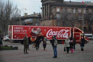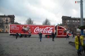 Сегодня, 27 декабря, в Запорожье приехал всем известный караван Coca Cola. Фургон со сладким напитком «припарковался» в центре города – возле новогодней елки на площади Фестивальной, а потом переместился к другой елке – на площади Маяковского.
