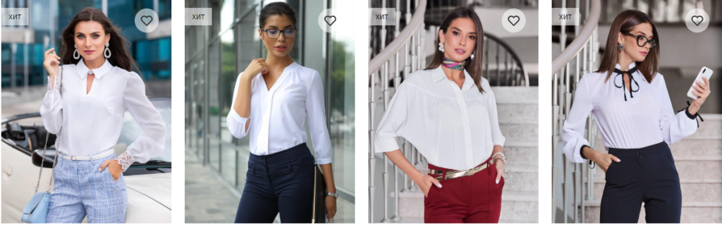 Классика офисного стиля – белые блузки, однотонные, с кружевом, в полоску, с контрастной отделкой и оригинальными пуговицами. Добавьте в гардероб блузку насыщенного цвета индиго, бордо, оранжевого, малахитового.