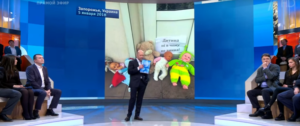 Ведущие ток-шоу назвали жуткую смерть ребенка на которого упал самоубийца в новогодний вечер «метафорой наших отношений», затем выборочно привели цитату блогера Юрия Гудыменко, призвавшего приносить к церквям УПЦ детские игрушки и взяли комментарий у главы информационного отдела Украинской православной церкви Московского патриархата архиепископа Климента, где тот заявил, что «Киевский патриархат – не есть церковь и не имеет ничего общего с Вселенской православной церковью».