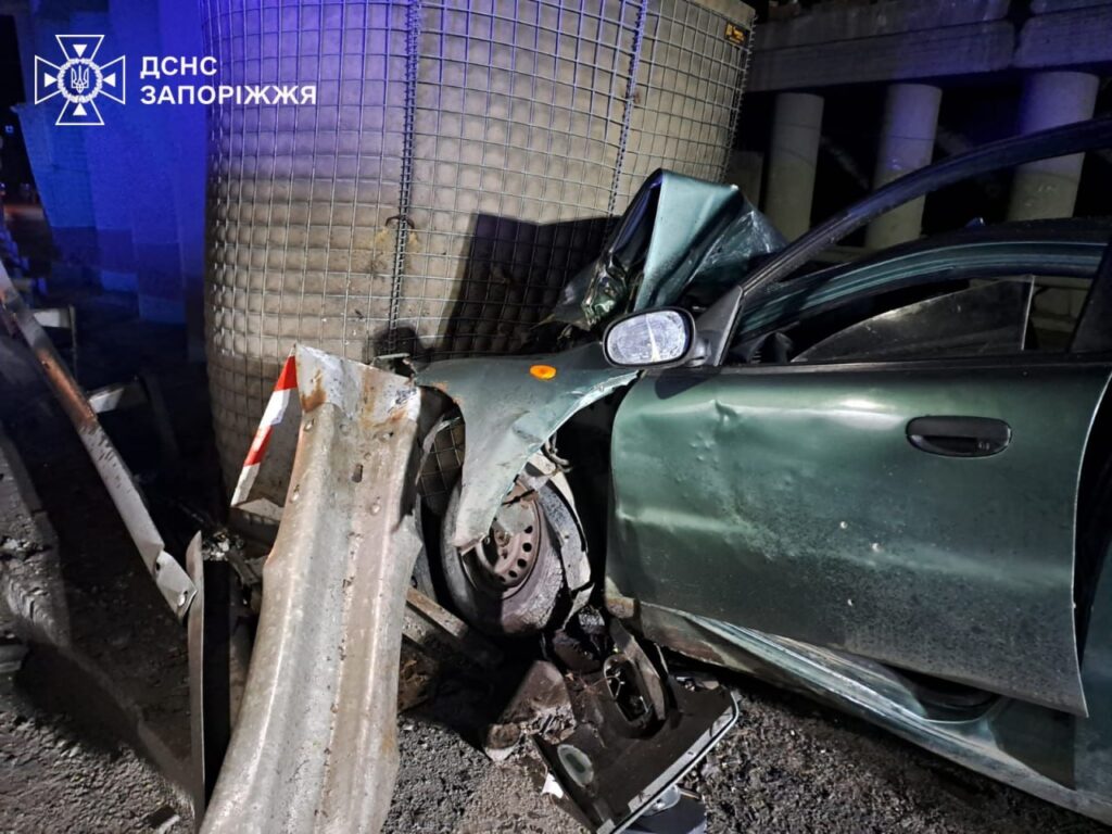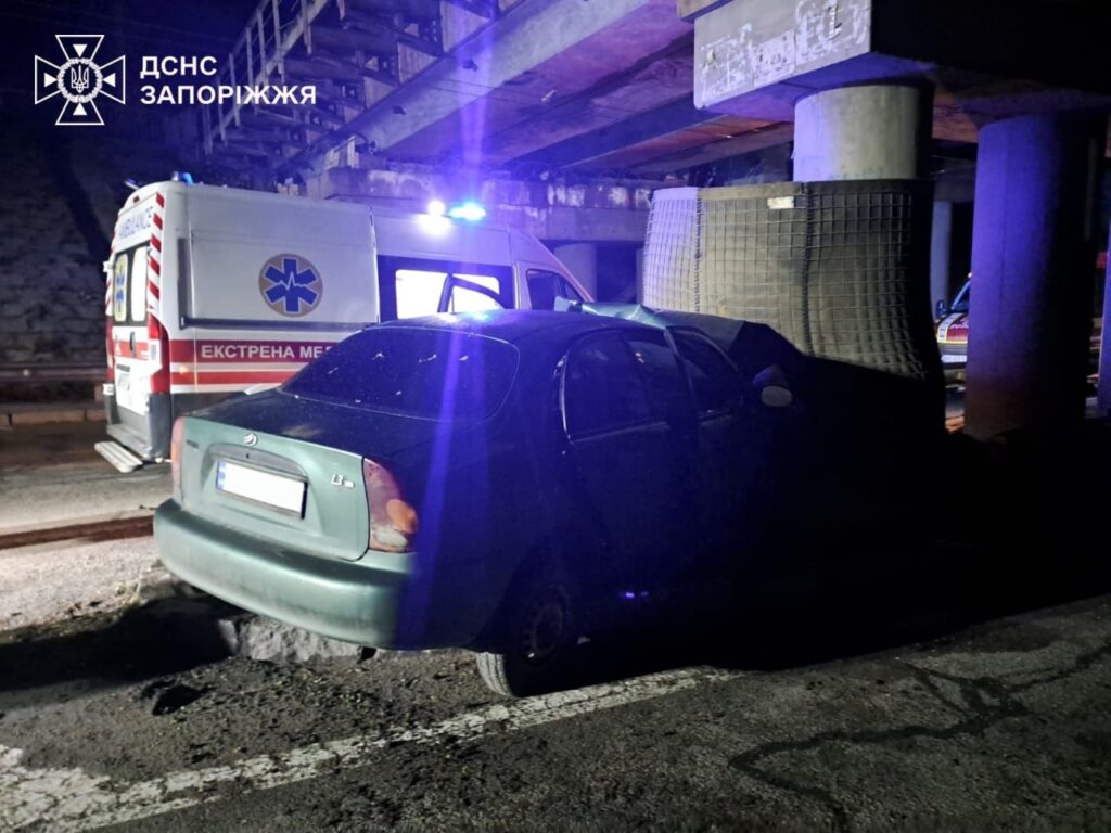 У Запоріжжі «Ланос» в'їхав у бетонну опору: постраждалого водія діставали з понівеченої автівка, — ФОТО