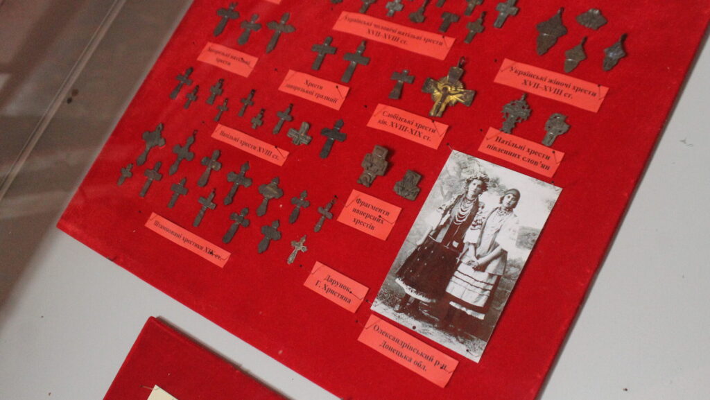 На виставці для відвідувачів представлено більше 400 традиційних і незвичайних артефактів (натільних та нагрудних хрестиків, чоток, паломницьких медальйонів XII-XХ ст.) з зібрання відомого дослідника, які походять з території українського Сходу, а саме – Донецької області.