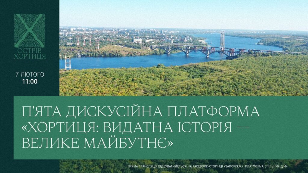 В понеділок, 7 лютого, об 11:00, у хабі «Платформа спільних дій», яка знаходиться за адресою вул. Тургенєва, 29, відбудеться п’ятий етап обговорень в рамках дискусійної платформи «Хортиця: видатна історія – велике майбутнє». Головна тема заходу – якими мають бути парки острову Хортиця.