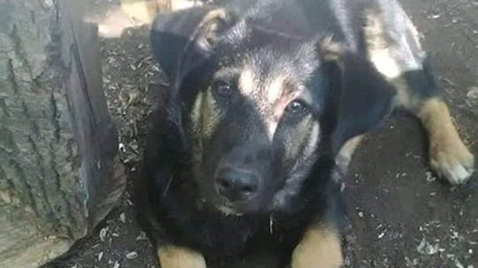 У собаки є особлива прикмета: на боці шрам від поранення.