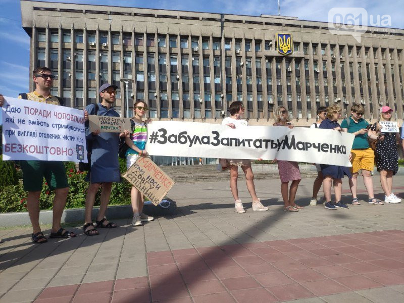 Вчора, 1 серпня, близько двох десятків запоіожців влаштували на площі Героїв протестну акцію в продовження флешмобу «ЗабулаСпітатьуМарченка», де висунули вимогу звільнити із займаної посади уповноваженого з питань забезпечення рівних прав та можливостей жінок і чоловіків в Запорізькій області Владислава Марченко.