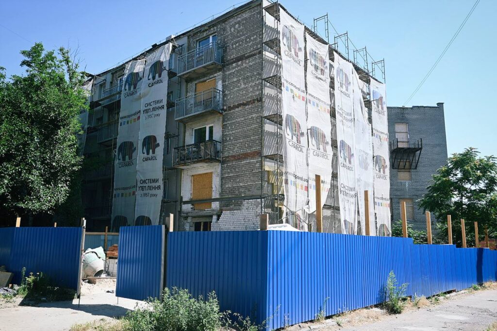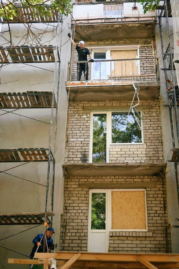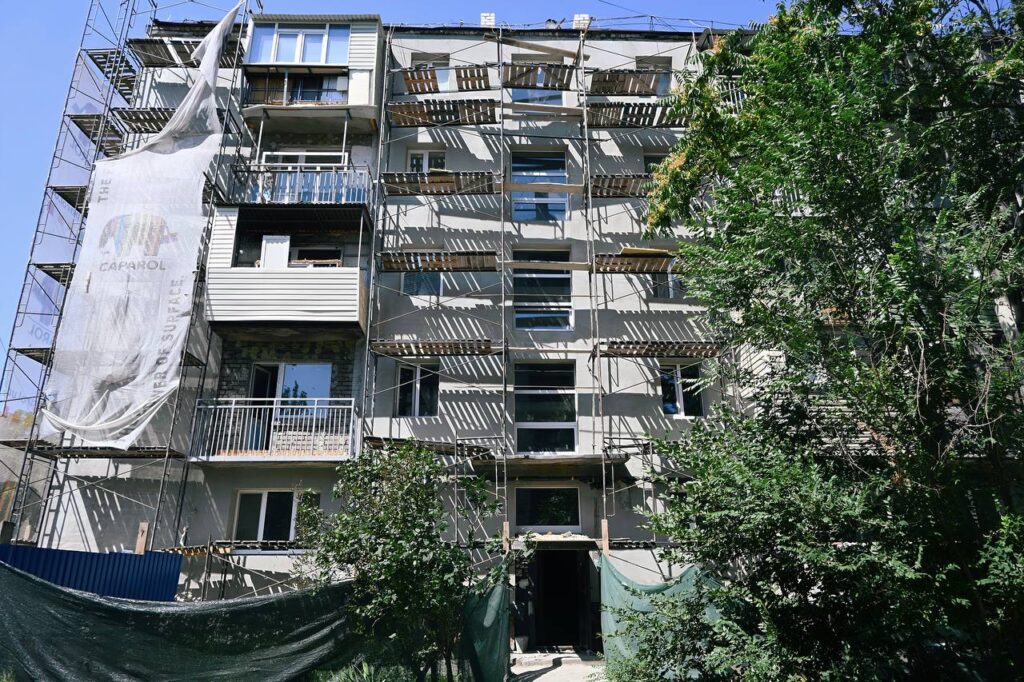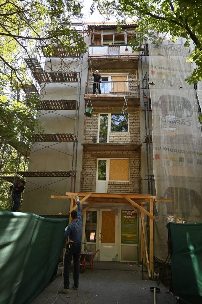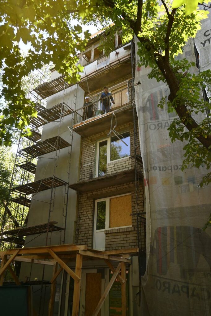 Посилюють конструкції та утеплюють фасад: у Запоріжжі триває відновлення будинку, який двічі був пошкоджений ворожими ударами, — ФОТО