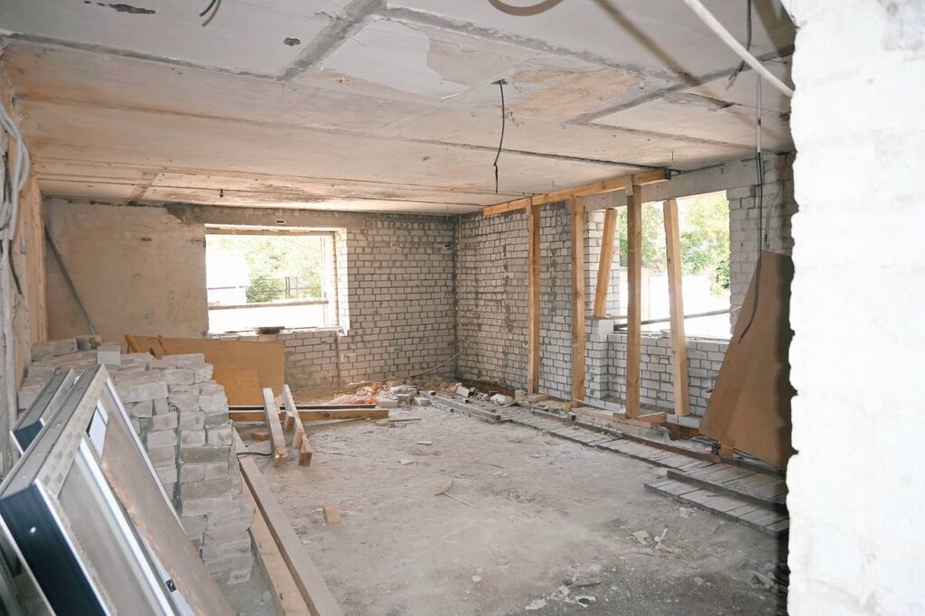 Наразі ведуться роботи з другого етапу, а саме: відновлення та посилення пошкоджених конструкцій першого поверху першого під’їзду. Також триває демонтаж у квартирах та роботи з утеплення фасадів. Розпочали встановлення металопластикових вікон.