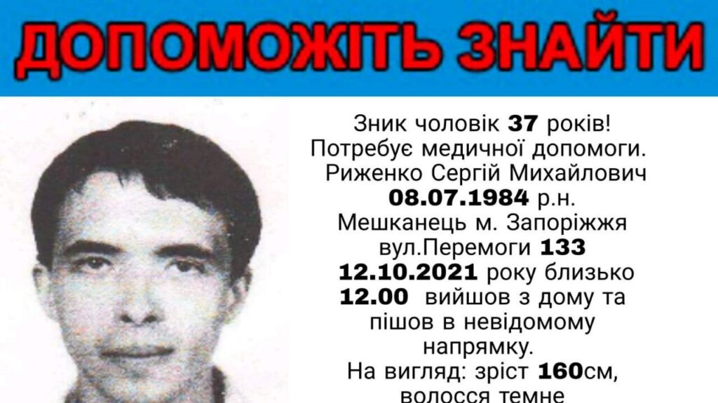 Чоловікові 37 років, він потребує медичної допомоги. Усіх небайдужих, хто може знати місцеперебування Сергія, чи бачив його в Запоріжжі чи області, просять повідомити за номерами телефонів, що вказані в орієнтуванні.