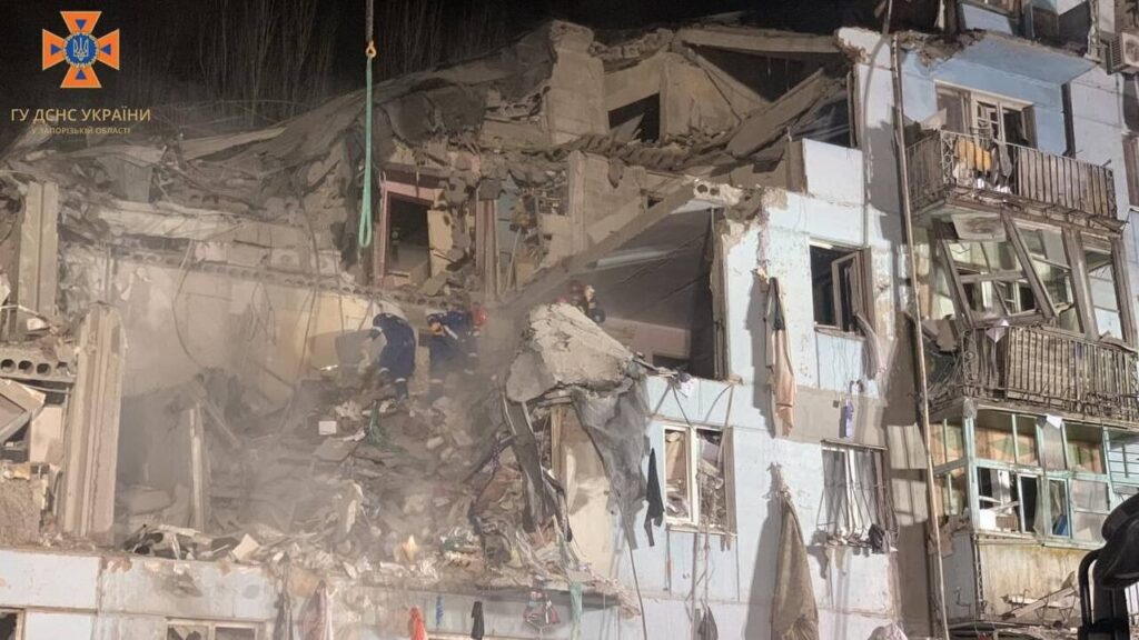 Вже понад добу триває ліквідація наслідків ракетного удару по житловому будинку у Запоріжжі.