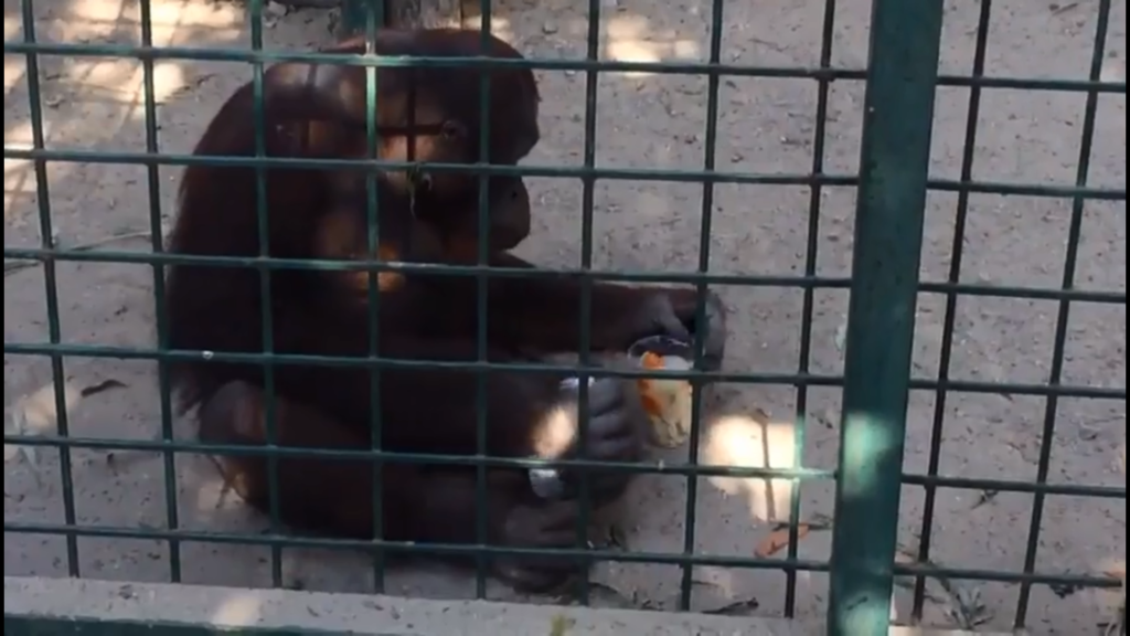 Один из самых прелестных постояльцев бердянского зоопарка «Сафари» органгутан по имени Лаки очень любит лакомится полезными продуктами. Один из его обедов, запечатлели сотрудники зоопарка и выложили ролик на своей страничке в Facebook.
