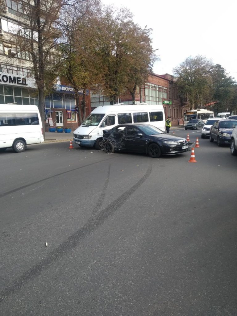 Сегодня, 23 октября, в центре Запорожье произошло ДТП с участием маршрутного такси.