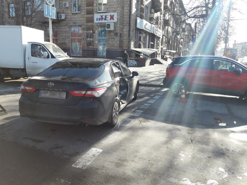 На перетині проспекту Соборного та вулиці Південноукраїнської зіткнулися маршрутка «Рута» і Toyota Camry.