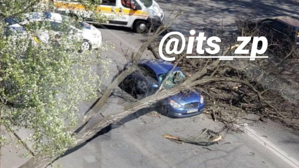 Близько години тому на перетині проспекту Соборної та вулиці Фортечний на Hyundai Accent, який тільки перетнув перехрестя, впала акація.