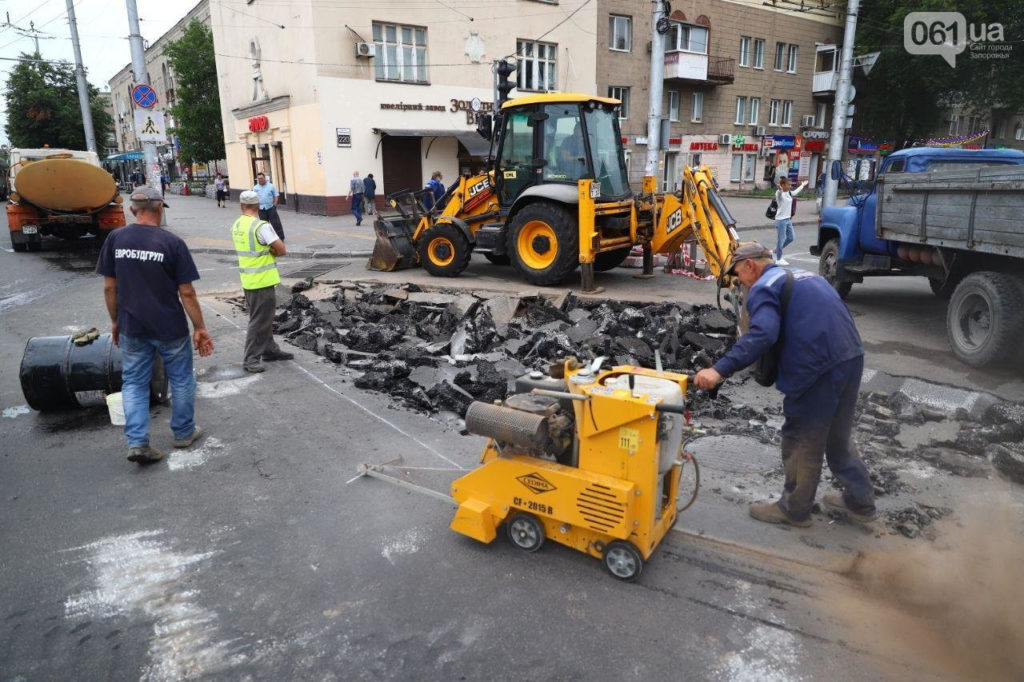 У центрі Запоріжжя на магістральному перехресті через зливу просів асфальт, – ФОТО