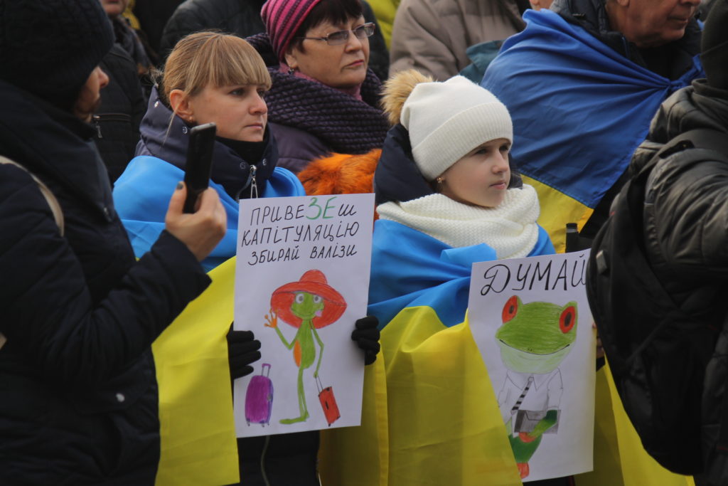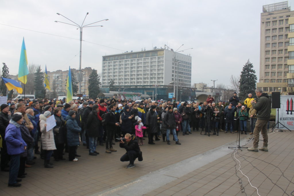 На акцию на площадь Героев, что перед зданием Запорожской ОГА, вышли несколько сотен жителей города. Митингующие высказывают беспокойство, что завтра в Париже могут принять мирные условия не на условиях Украины.