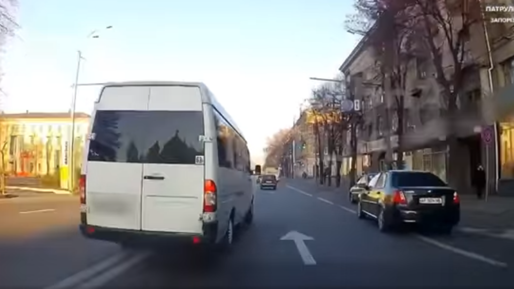 У центрі Запоріжжя водій маршрутного таксі грубо порушив правила дорожнього руху і перетнув подвійну суцільну смугу.