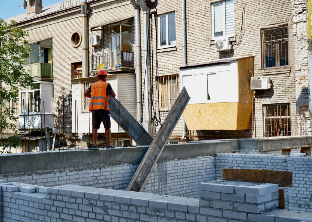 За його словами, завершене мурування 1-го поверху, наступного тижня стартує відновлення 2-го поверху. Вже збудовано опорну колону у підвалі, а паралельно утеплюється фасад будинку та йде ремонт покрівлі. Сьогодні починається ремонт 1-го під’їзду.