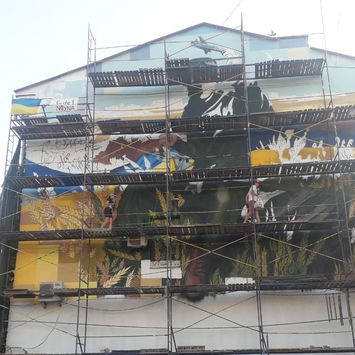 Мурал створюють художники Олена Нойна (Noyna) та Віталій Гідеван (Gide1).