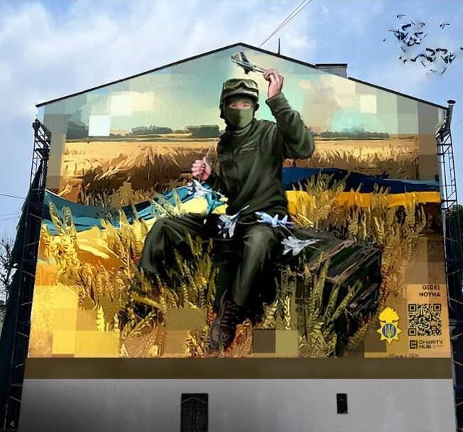 У Подільському районі Києва біля кінотеатру «Жовтень» на вулиці Ярославській, 17 створюють патріотичний мурал «Запорізький месник», присвячений Національній гвардії України.