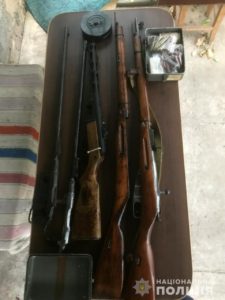 7 сентября работники Бердянского отдела полиции провели обыски в селе Азовское Бердянского района, по месту жительства 57-летнего мужчины. У него дома полицейские обнаружили и изъяли пистолет «ТТ» калибра 7,62 мм, револьвер сигнальный «Наган» С, автомат «Томпсон», пистолет-пулемет Шпагина, винтовку «Мосина», карабин системы «Симонова», пистолет шумовой с магазином, две гранаты «Ф-1» с запалом.