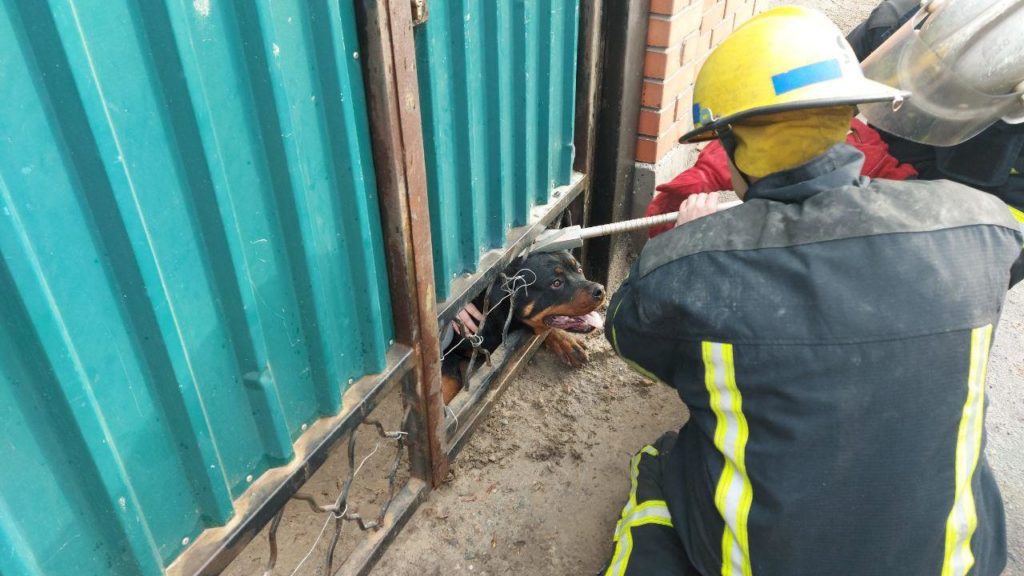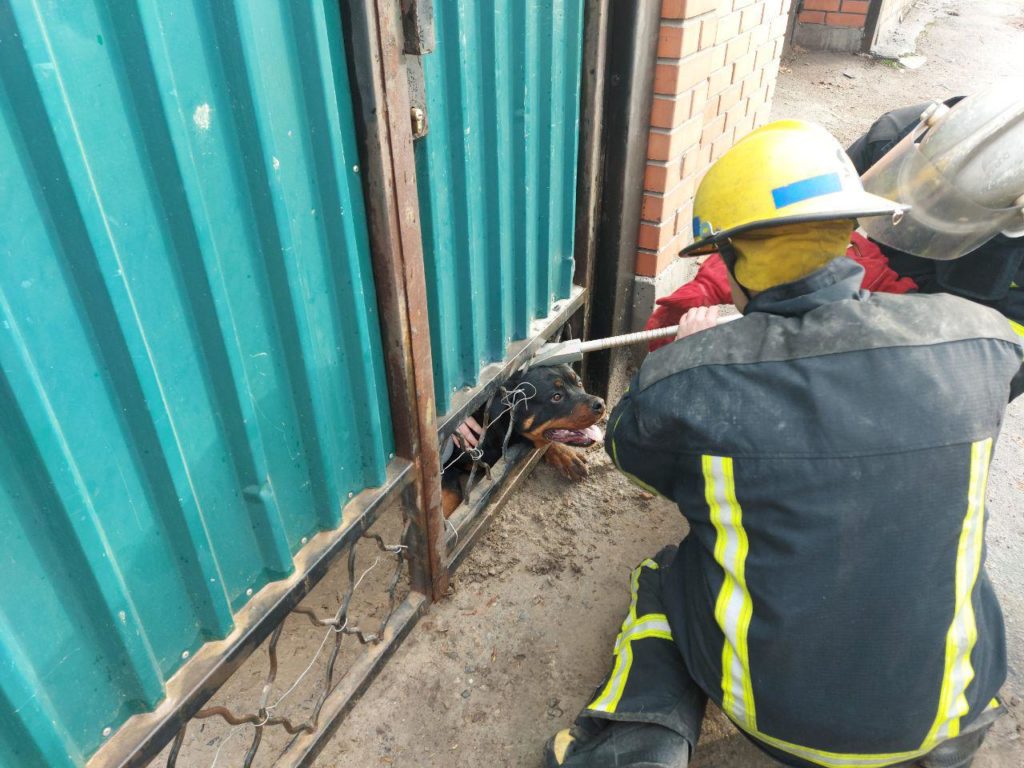 Прибувши на місце події, співробітники ДСНС встановили, що у залізній решітці хвіртки застряг домашній пес. Рятувальники за допомогою спеціального обладнання вивільнили ротвейлера із пастки і передали господарям. На щастя, пес не постраждав.