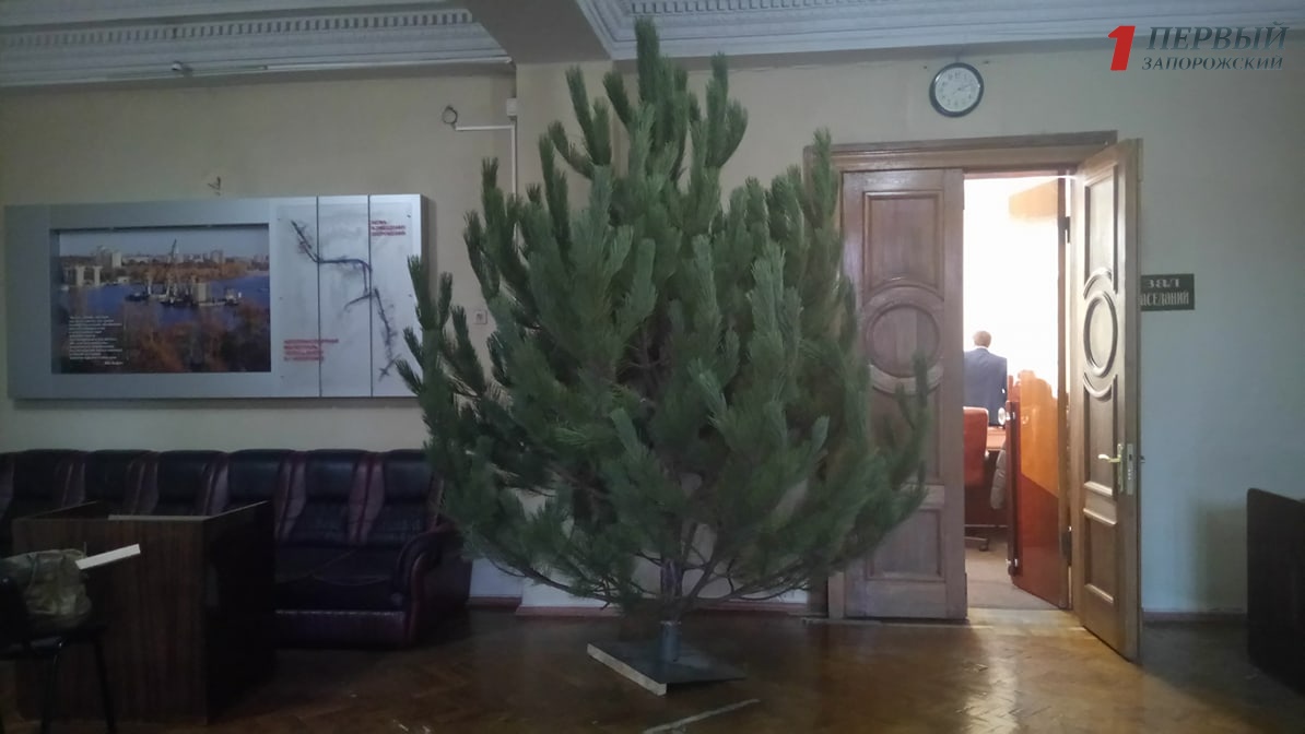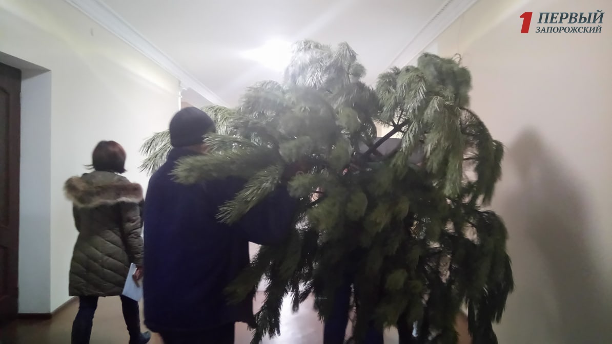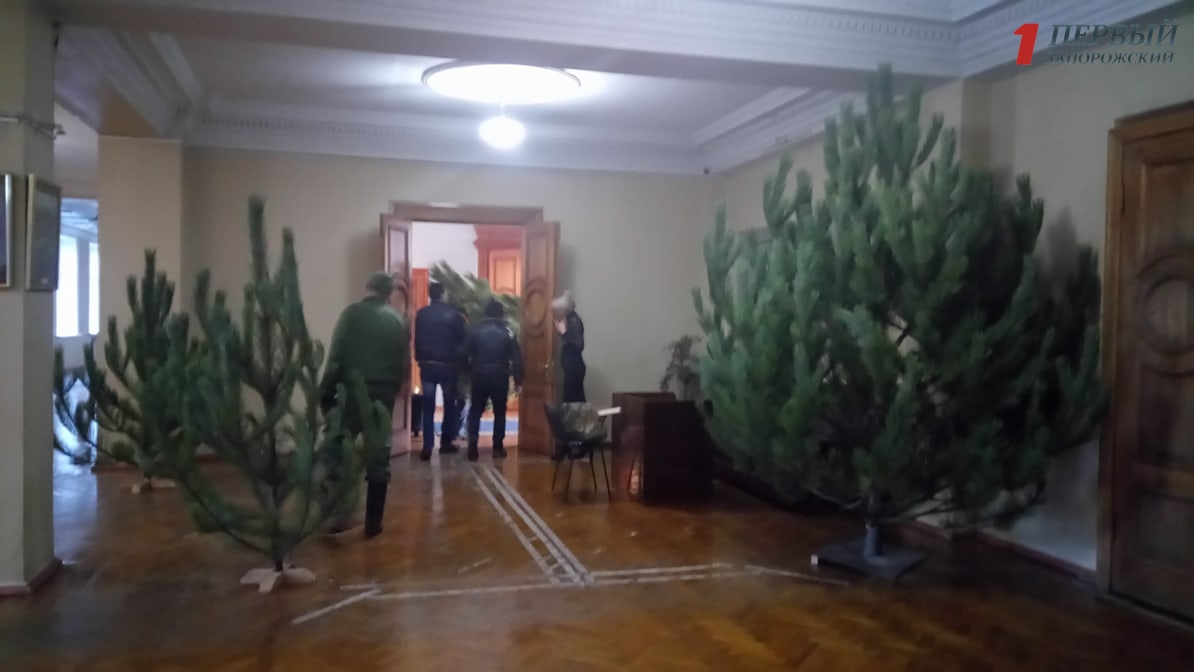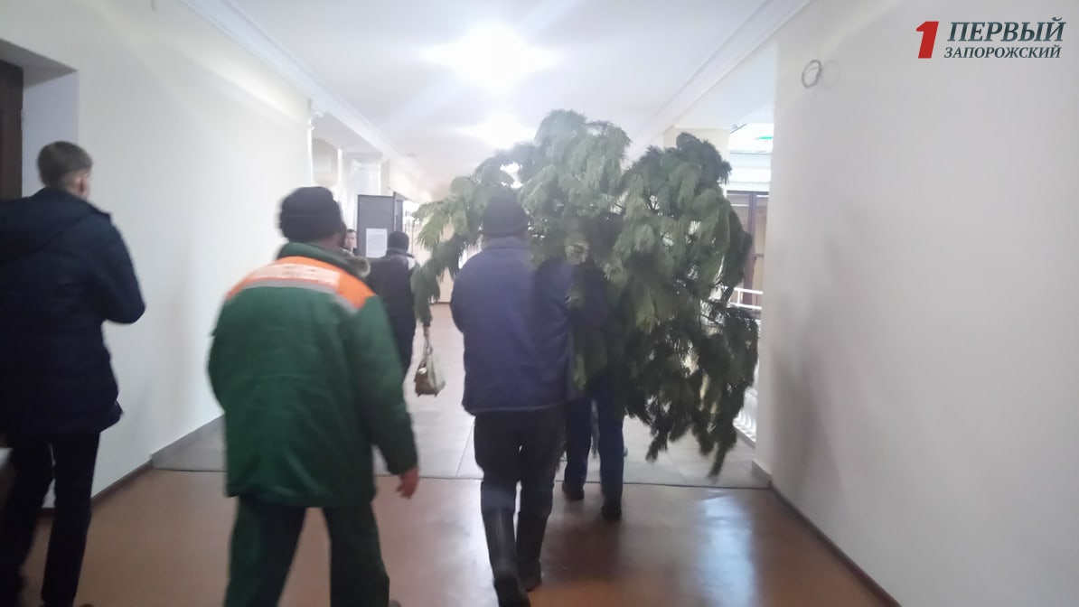 В мэрии Запорожья устанавливают новогодние елки - ФОТО